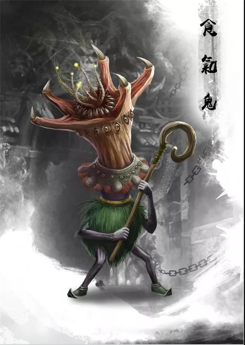 食气鬼,又名犍陀,唯得人祭神祭天的供品气味为食,常不能多。生前独食美味,不给妻子儿女,故受此报。佛教中三十六种饿鬼之一。在丰都鬼城有它的雕像。民间传说,此鬼靠吸食空气果腹,因而对各种气味特别敏感,能辨别天地间的各种气味。阎王爷派它守关,它能辨别出混杂在芸芸众生之中的各种鬼魂的异味来,并将其擒获。总的来说,食气鬼是比较正直的鬼,见做了亏心事的人才会伤害,被它害到的人会精神萎靡,迅速衰老从而很快死亡。
