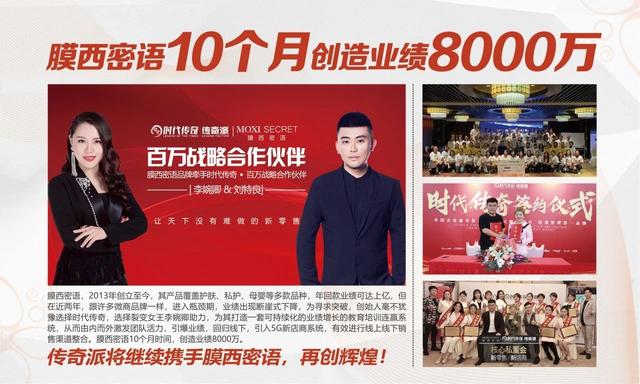 膜西密语于8月23日举办的七周年千人盛典,盛况空前,2020上半年“战疫”已取得阶段性胜利,下半年“重启”已启动,时代传奇将全力以赴助力品牌重启财富之路,实现品牌业绩十倍暴增。