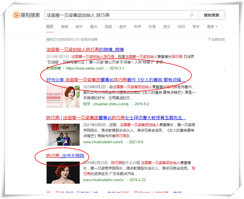 近日,通过媒体效应的不断传播与积累,以陈巧燕女士为核心的关键词不断覆盖整个360、搜狗、百度等官方平台。只需要在平台网页输入“陈巧燕”相关关键词,便能获取到相关个人信息、品牌信息以及新闻报道。通过互联网领先于传统媒体的优势,陈巧燕女士的品牌获得巨大推广,全面提升了全网个人品牌影响力。