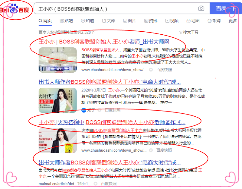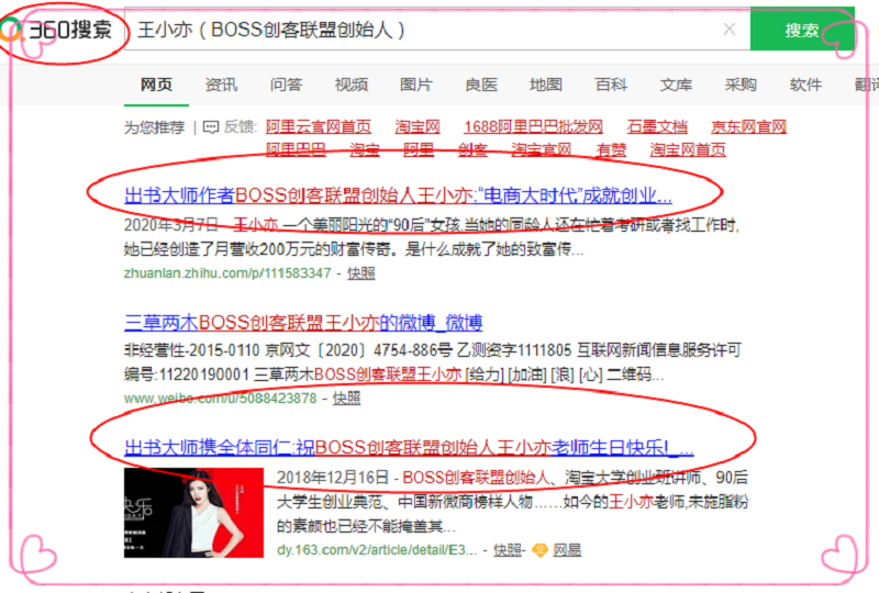 近日,BOSS创客联盟创始人王小亦个人品牌网站被360、搜狗、百度三大平台收录,该举措是一种有效提升品牌价值的方式,同时是一种全面展示品牌实力的有效形式,能够大大提升周导先生的大众知名度,在各大网络平台形成一股流量传播风暴,为其带来丰厚的流量,最终成功实现其“IP变现”。