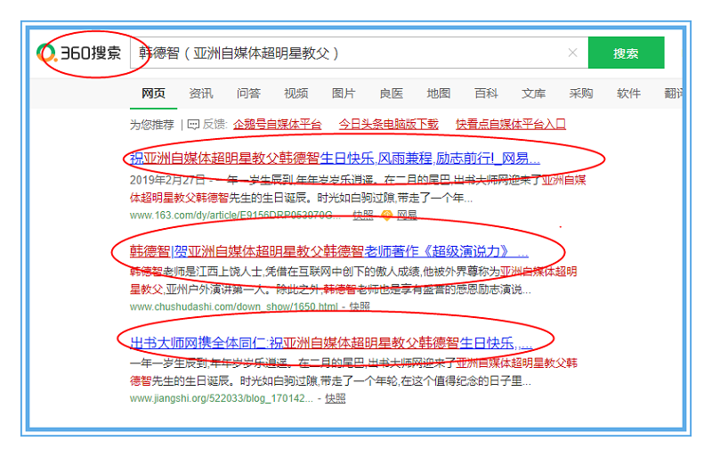 经前期传播与积累,亚洲自媒体超明星教父韩德智书作者营销网站被360、搜狗、百度平台收录,只需要在平台搜索引擎输入“韩德智”相关关键词,便能获取系统详尽的品牌内容。这种方式既便捷又有效,能够确保大众快速搜索到韩德智老师及其个人品牌相关内容,全方位了解其个人品牌魅力,提升韩德智老师大众知名度。