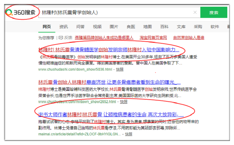 近日,林氏震骨学创始人林隆村书作者关键词置顶360、搜狗、百度平台,形成了以林隆村先生为核心的流量品牌IP,粉丝读者只需在平台界面搜索“林隆村”相关关键词,便会迅速跳转页面连接品牌信息,快速的完成林隆村先生的品牌信息流入,品牌影响力得到广泛提升。