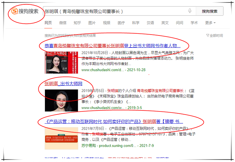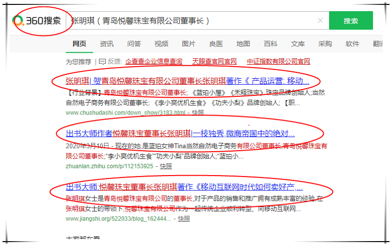 近日,青岛悦馨珠宝有限公司董事长张明琪书作者关键词登顶360、搜狗、百度平台,不仅带来了流量内容,也形成了以张明琪女士为核心的流量品牌IP,粉丝读者只需在平台界面搜索“张明琪”相关关键词,便会迅速跳转页面连接品牌信息,快速的完成张明琪女士的品牌信息流入,提升了行业知名度与品牌影响力。
