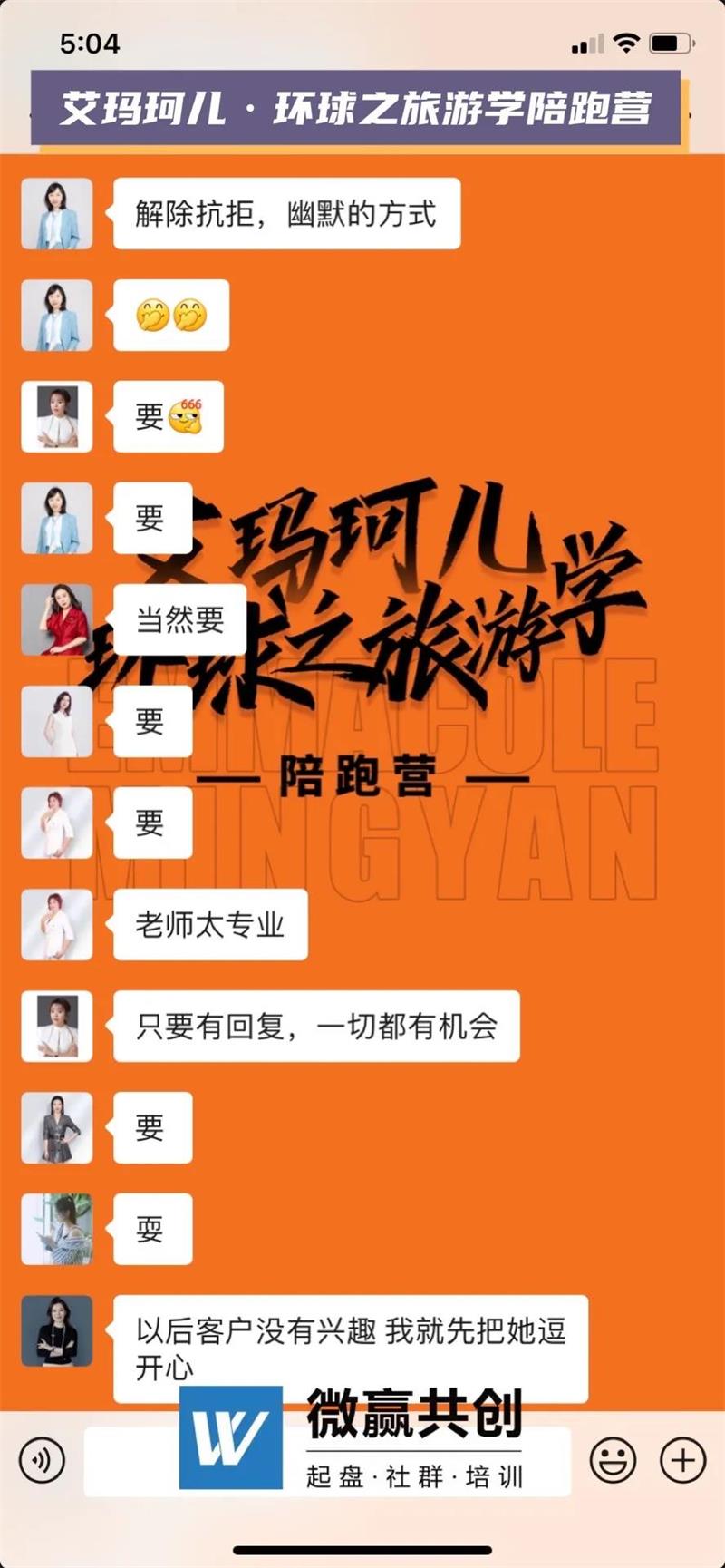 在活动展开过程中,微赢共创的专业导师团队为代理赋能,在社群内进行高效课程输出,不断鼓励代理、激发代理活性,让每一位艾玛珂儿的家人能够通过这次旅游有一次新的体验,面对生活压力也能展现自己最勇敢的一面。在这次旅游的过程中,赋能导师全程陪跑,进一步帮助代理解决销售问题,传授专业的销售话术,帮助代理成交客户。同时创始人带领整个团队,给予代理信任。