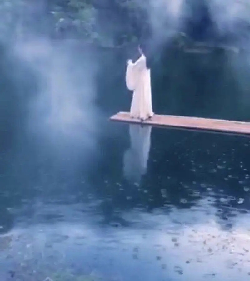 在母亲与丈夫拔刀相向的时候,她毫不犹豫地从高台一纵而下,带着腹中胎儿,从此脱离喧嚣红尘,堕入鸿蒙冥界。