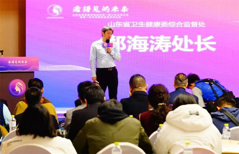 在大会上,山东省民营整形美容协会会长曹京敏,山东省卫生健康委综合监督处处长郑海涛分别致辞。曹京敏介绍了协会的基本情况,并对参会者表示感谢和欢迎;郑海涛对协会的工作给予了高度肯定,他希望协会能继续努力,为山东医美的健康繁荣多做贡献。