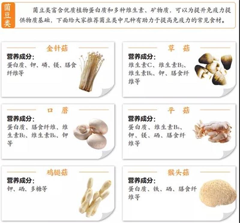 我们平时生活中常见的食材大致可分为谷薯类、蔬果类、菌豆类、畜肉类、禽蛋奶类、水产类等,每一类食材对提高人体免疫力都有不可替代的作用。