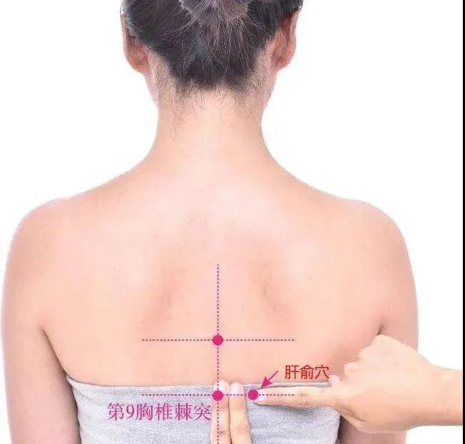 1肝俞穴肝俞穴是肝的背俞穴,是肝的元气在身体背部汇聚而成的“水潭”,是养肝不可缺少的穴位。在背部,第9胸椎棘突下,旁开1.5寸。