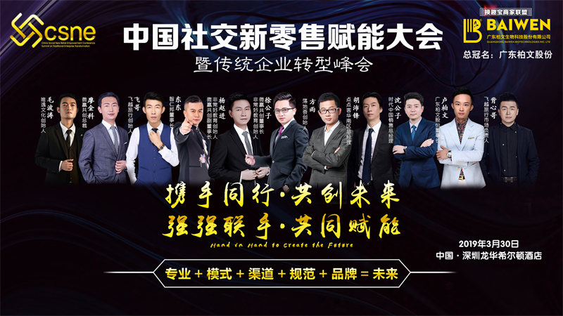 社交新零售转型之路势在必行,助力传统企业转型变革,2019社交新零售将开启一个新纪元。我们强强联手,一起赋能传统企业渠道变革;我们携手并进,一起助力企业创新转型升级;行业最顶级的思想盛宴,我们一起共同发声,我们最专业+最落地+最不同+最健康。此次大会总冠名广东柏文股份和支持单位中国互联网协会微商委员会、广东省微商协会、广东省保健品协会、广东省燕窝协会、深圳市微商协会及协办单位智仁邦、落地荟、永动机文化、天麓飞行俱乐部、微商精英汇、K大咖、新零售协会、创导国际、唐顿教育邀请您一同见证传统企业渠道变革,见证最实战的起盘解决方案,最落地的培训解决方案。
