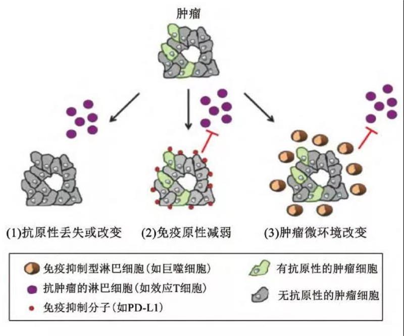 肿瘤细胞可以通过对自身进行改造,如让自己身上的抗原丢失或改变,来避免激活免疫细胞,免疫细胞未激活便不能产生一系列的免疫反应,进而无法发挥对肿瘤细胞的杀伤功能。[1]
