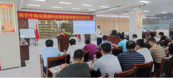 2021年9月20日,天淘集团董事长陈顺军一行人抵达湖北黄冈,与湖北孺子牛鞋业集团有限公司等人就新零售发展进行深度交流与探讨,双方在数智化升级改造等方面认知一致,并达成战略合作意向。