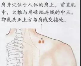 取穴位:位于肩上,前直乳中穴,当大椎穴与肩峰端连线的中点上。