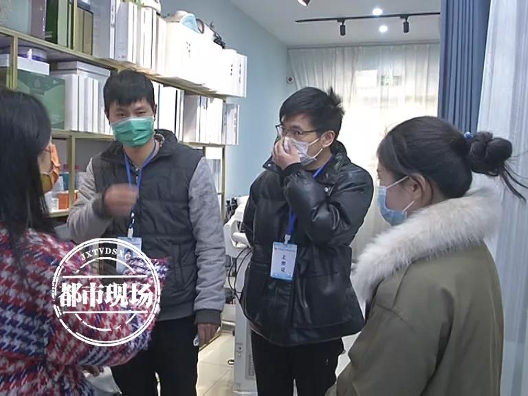 于是,记者拨打了南昌高新区市场监督管理局城东分局以及高新区卫生健康和疾病预防控制中心的投诉电话。随后,执法人员和店主周业成相继赶到了店内,对于郭女士的面部美容问题,她做了简单介绍。