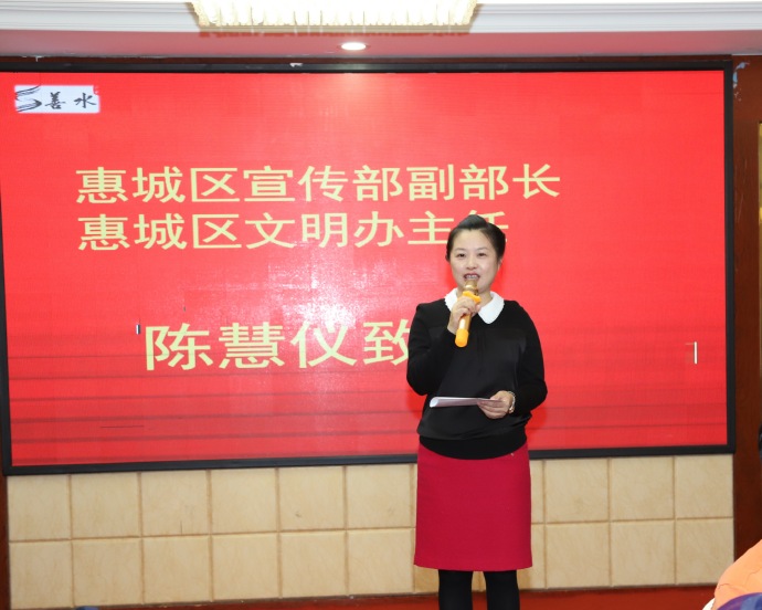 惠州市委宣传部副部长、市文明办主任、市志愿服务联合会会长韩维斌,惠州市工商联党组成员、秘书长詹宏,惠州港务集团有限公司副总经理林可明,惠城区宣传部副部长、惠城区文明办主任、区志愿服务联合会会长陈慧仪,惠城区妇联党组书记、主席李丹梅,惠城区工商联党组书记陈国伟等嘉宾领导、善水文化首席讲师黄瑞媚、善水文化讲师团讲师以及善水风雨相伴的家人、惠州日报、惠州电台等新闻媒体的记者朋友及志愿者朋友们出席活动。
