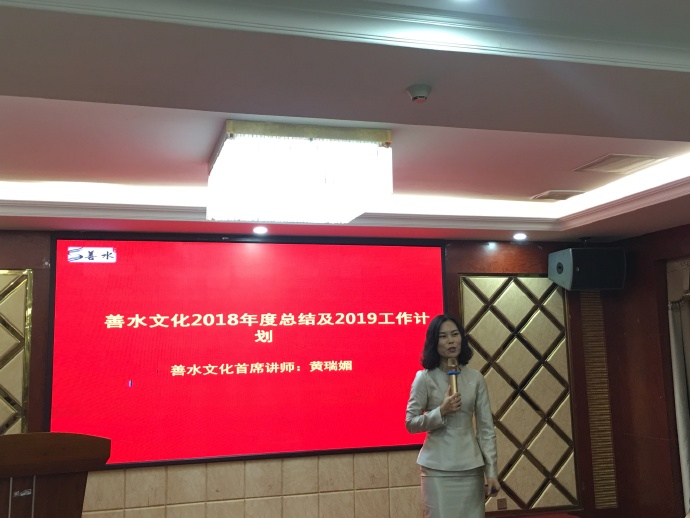 善水文化创始人黄瑞媚老师,和大家一起回顾善水文化一年的丰硕成果,一同迎接新的开始,善水的每一个期望,每一个梦想,都饱含着各部领导们的无私关怀和支持,善水的每一个故事,都有因有大家的支持和鼓励,而变得更加精彩,更加动人!