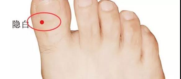 隐白穴有统血、止血的作用。艾灸此穴可刺激脾经,促进气血源源不断的生化,是女性补血的大穴。