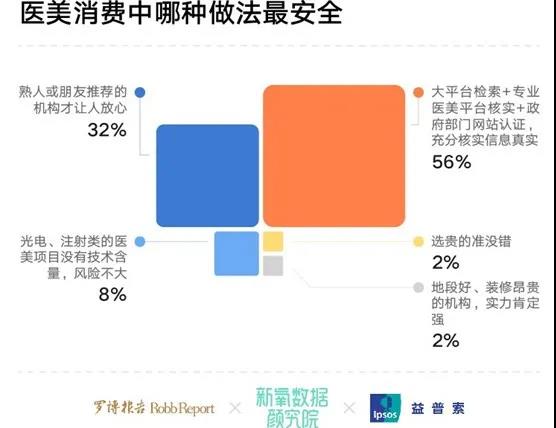 调研显示,高净值人群医美消费市场增长可期。受访的高净值人群中,44%没有体验过医美消费,有22%对医美消费持有期待;超过六成的受访者会通过“熟人或朋友介绍”来选择医美机构。这一非理性决策因素,不仅给“杀熟”提供了机会,更凸显出专业、安全医美平台的价值。