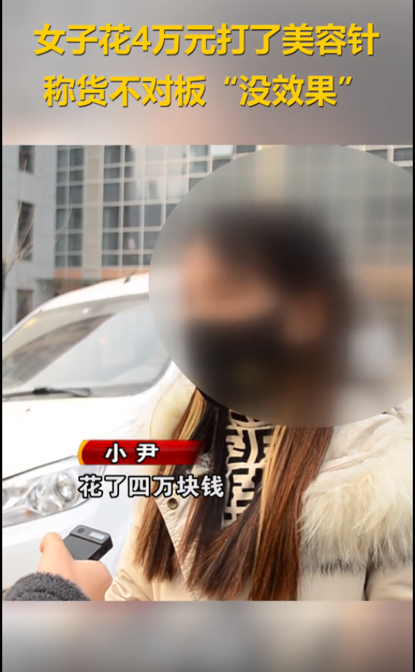 小尹:我当时花了4万元钱打针,打的时候拍了一张针剂的照片,回家上网一查发现就是最普通的玻尿酸,根本不值那个钱,而且也没有效果。