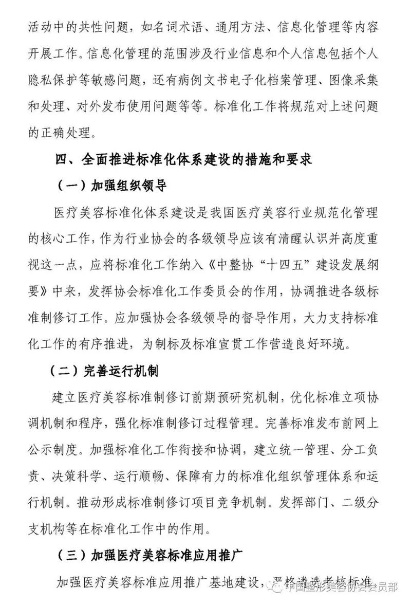 1月30日,中国整形美容协会公布《中国医疗美容标准体系建设“十四五”规划》(草案),内容包括行业管理标准、行业技术标准、教育培训标准、行业基础标准等四个方面近50个标准。协会通知,希望行业同仁对草案进行审阅!