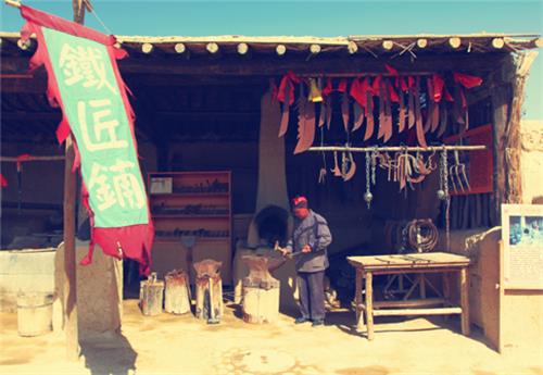 世上有三苦:撑船、打铁、磨豆腐,这里展现的就是农耕时期,三苦之一的打铁工艺。 打铁铺也称“铁匠炉”。所谓“铺”一般只是一间房子,屋子正中放个大火炉,炉边架一风箱,风箱一拉,风进火炉,炉膛内火苗直蹿。 要锻打的铁器先在火炉中烧红,然后移到大铁墩上,由师傅主锤,握大锤进行锻打。打铁一般由两人操作,分“上手”(师傅)和“下手”(徒弟)。上手经验丰富,右手握小锤,左手握铁钳,在锻打过程中,上手要凭目测不断翻动铁料,使之能将方铁打成圆铁棒或将粗铁棍打成细长铁棍。 铁器成品有与传统生产方式相配套的有农具,如犁、耙、锄、镐、镰等,也有部分生活用品,如菜刀、锅铲、刨刀、剪刀、马掌等,此外, 有如门环、泡钉、门插等。