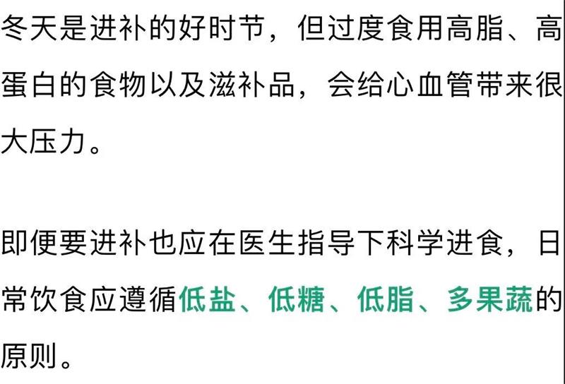 冬季人们室外活动减少,宅在家里很容易摄入更多高脂食物,引起肥胖。高脂肪、高碳水化合物饮食会使甘油三酯、胆固醇水平升高。