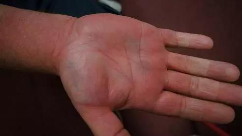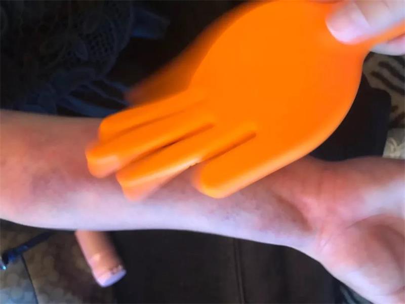 这个穴位在五行属土,对应着脾胃,是一味很经典的“健胃消食片”,可以降胃火、去心火,提升胃动力。脾胃不和,消化不良等都可以通过这个穴位来调。它在手掌根,腕横纹的中点上。可以直接用拍痧掌拍打大陵穴即可。