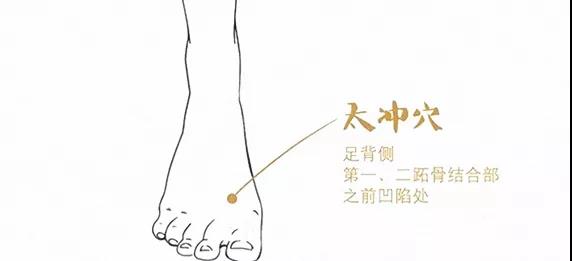 太冲穴:相当于储存肝经元气的仓库,刺激太冲,能很好地调动肝经的元气,使肝脏功能正常。