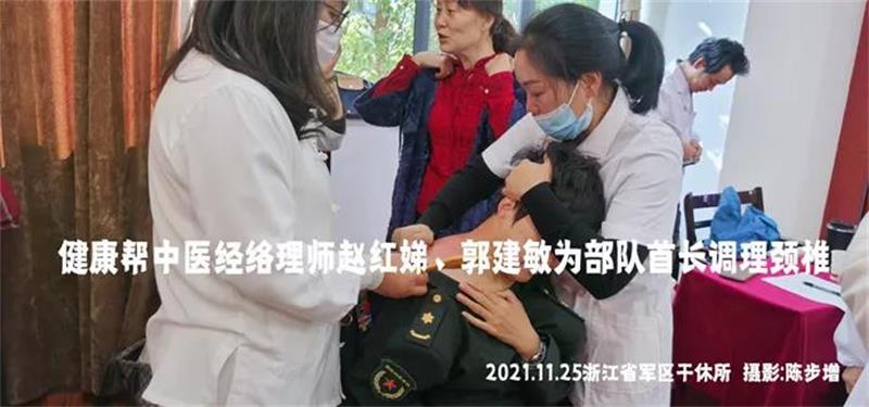 2021年11月25日,杭州古法经络技术公益志愿服务队,负责人王琴带领下,前往浙江省军区杭州第三干休所展开公益服务,为部队首长、官兵和家属进行健康调理。
