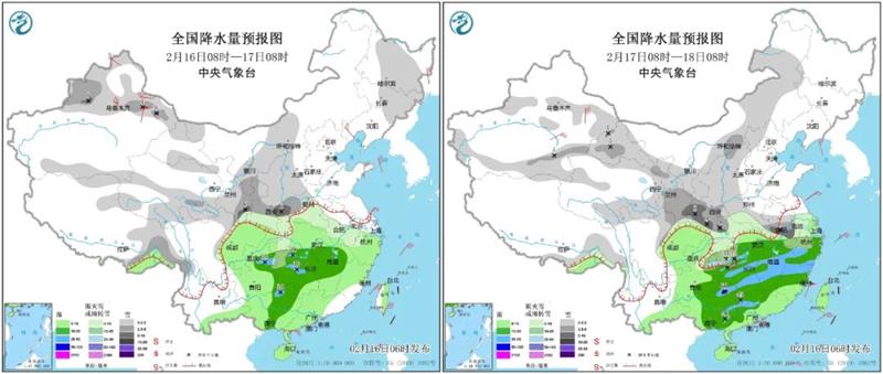 预计2月16至18日本月第三轮大范围雨雪天气将“上线”影响超25省区市其中甘肃南部 宁夏南部 陕西中南部 河南西部 湖北西部和北部 安徽中南部 江苏西南部 浙江西北部等地部分地区有大雪局部高山地区有暴雪
