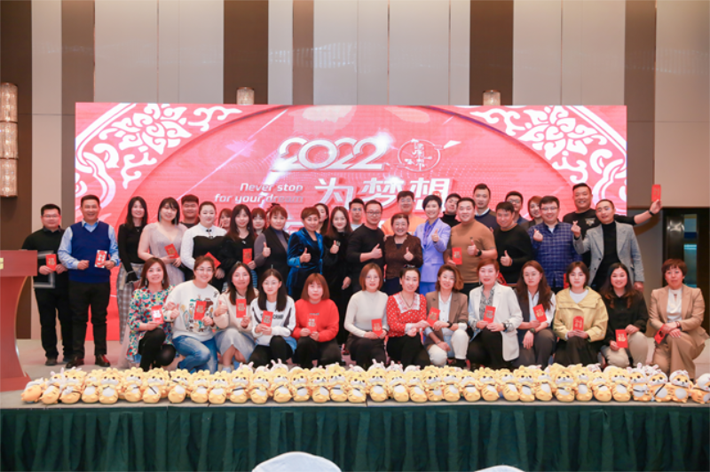 热烈的掌声中,王楠总裁上台致辞:对在场的全体员工表示衷心的感谢,也总结2021年全体员工的的努力与坚守!