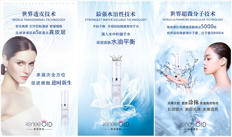 蕾妮品牌的护肤技术源自于德国,于2016进驻中国市场,在上海注册上海蕾妮生物科技有限公司并成立中国区总运营中心,公司主要从事于高端科技护肤产品的研发、生产、及销售于一体。线上实体相结合,特推出医疗级“玻尿酸抗衰修复精华液”引发行业震惊!企业一直专注国际抗衰美肤市场,致力于打造完美肌底,成熟的技术和精益的研发推动全球高科技抗衰美肤事业发展。先后推出“蕾妮玻尿酸修复精华”、“高效补水面膜”和“美白护肤科技产品”三款美妆产品。因为运用了世界最纳米乳超微分子技术、透皮技术、最强水溶性技术三大国际领先科技,使其产品具有: 抗敏修复、抗衰淡纹和保湿亮肤等特色,并且对肌肤无任何副作用。让蕾妮摆脱了周期长、投入大、回报慢的行业魔咒,真正做到高科技无添加的优势,一经上市就引发消费者的青睐,其产品销量一直呈直线上升趋势。蕾妮开创了全新的美肤市场格局,让世界见证中国美,也使得蕾妮走进了千家万户。
