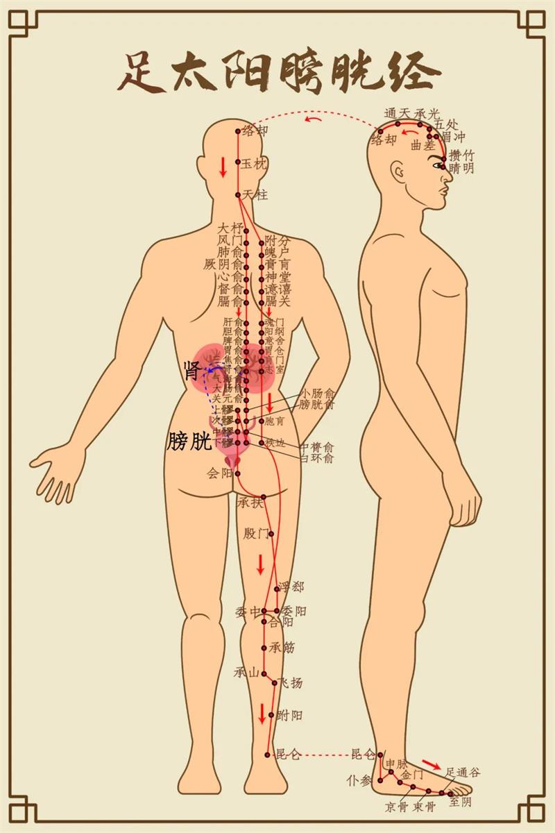寒冷可通过背部穴位影响局部肌肉或传入内脏,引起腰酸背痛,还可通过颈椎、腰椎影响上下肢肌肉及关节、内脏,导致各种不适,肺心病、哮喘等也常与背部着凉有关。
