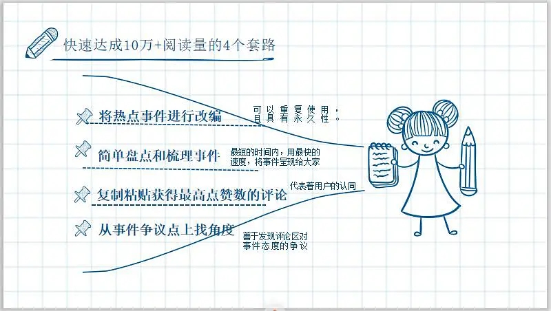 不需要丰富的人生阅历,不需要深厚的文学功底,也不需要庞大的粉丝基数,只需要抓住热点,熟练运用以上4种套路,你也可以写出10万+爆款文!