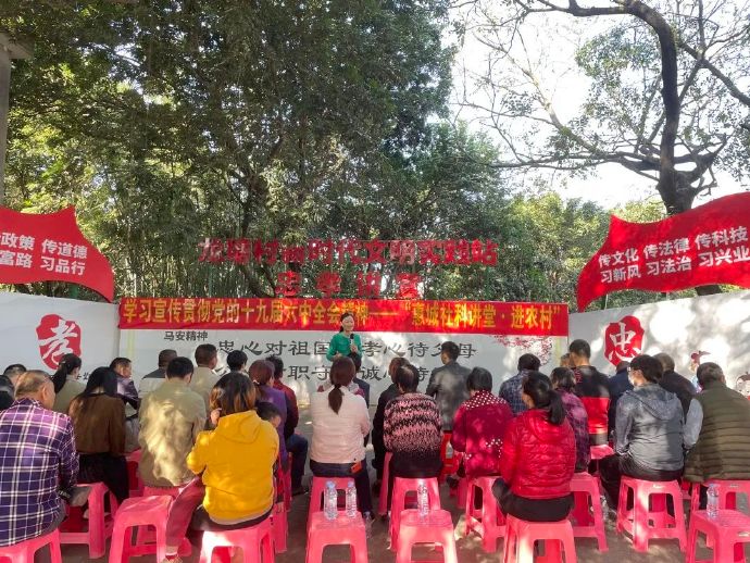 2021年12月14日,善水文化宣讲团首席讲师黄瑞媚走进马安镇龙塘村进行宣讲。黄瑞媚老师深刻解读了十九届六中全会的背景、概括及其主要内容,总结出便于记忆的号码:19634451025,让群众能更好地把握十九届六中全会精神。并结合家风建设,用一个问题引出“家是最小国,国是千万家”,体现出家风的重要性。通过正反例子讲述优良的家风形成,是几代甚至数代人的不懈努力,践行而形成的。家风正,则民风淳;家风正,则政风清;家风正,则党风端。