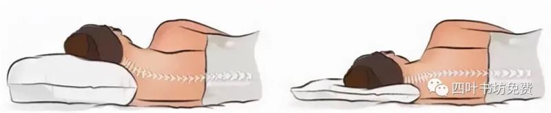 侧卧时枕头的高度:侧卧时,颈椎和胸椎、腰椎在同一直线上。如果不在同一直线上,就代表这个高度不适合你。