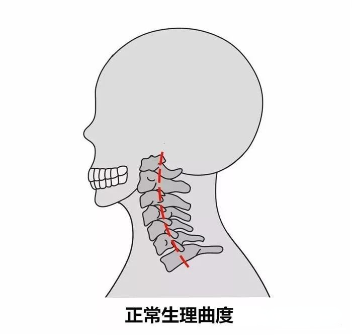 那么不合适的枕头为什么容易引起颈椎病呢?我们的颈椎存在一个天然曲度,如下图。如果这个曲度慢慢地向着变直的方向发展,就会引起颈椎病。