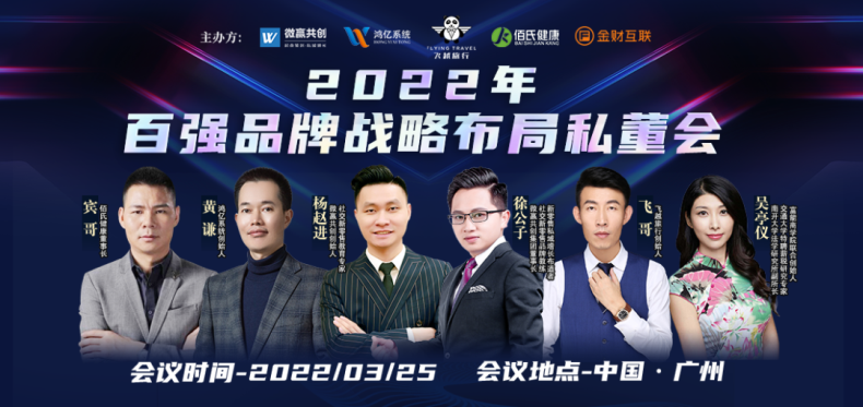 于2022年3月25日,由微赢共创、鸿亿系统、飞越旅行、佰氏健康、金财互联主办的《2022年百强品牌战略布局私董会》在广州举办,这也是2022年首场私董会,50多家品牌通过自己的实战经验分享2022年涅槃重生,破局增长的重要秘籍、专业的财税公司为你排忧解疑等;整个会议内容用最落地最实操的干货,赋能品牌2022年业绩持续倍增...........