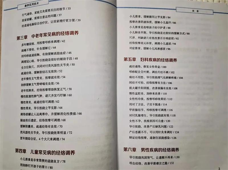 说到经络调养,人们马上会想到老人最需要(正如本文开头说的那样),或者会想到针对腰酸背痛的推拿按摩,打开书会发现远远不止如此。书中不仅讲到了中老年、儿童、女性、男性等不同群体的经络调养方法,还讲到了美容美体的经络调养,以及依据二十四节气的调养方法。