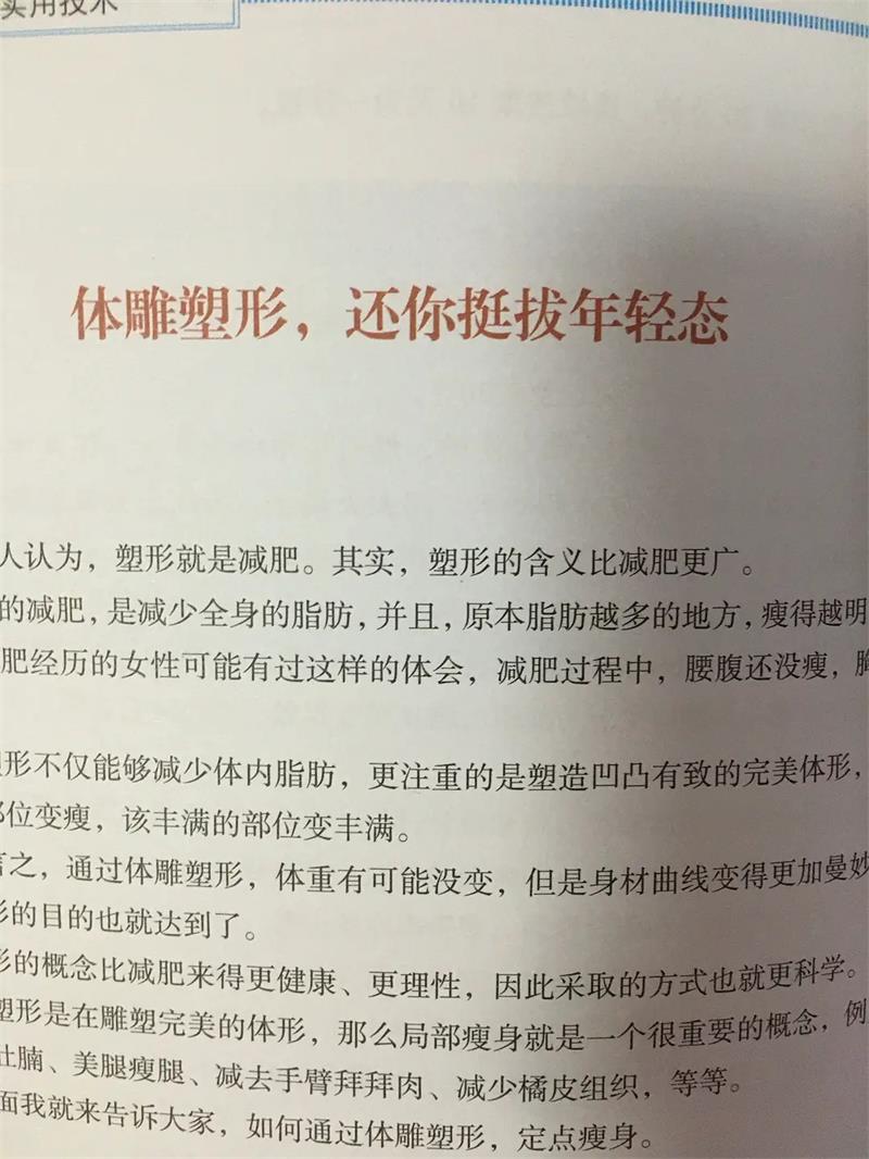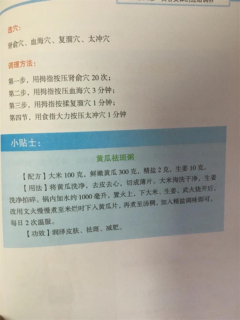 直到有一天,听说表姐产后变成了肥婆,因为工作需要,她自己看中医方面的书,自己推拿,并且按书上的指示,配药膳理疗,经过几个月的辛劳,她成功瘦到了解放前。