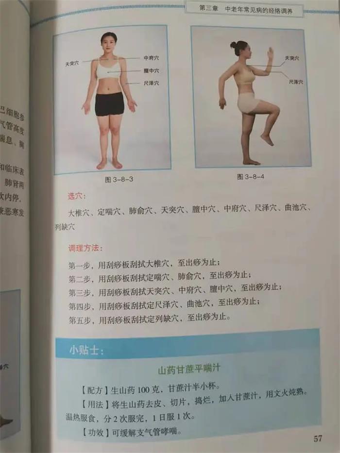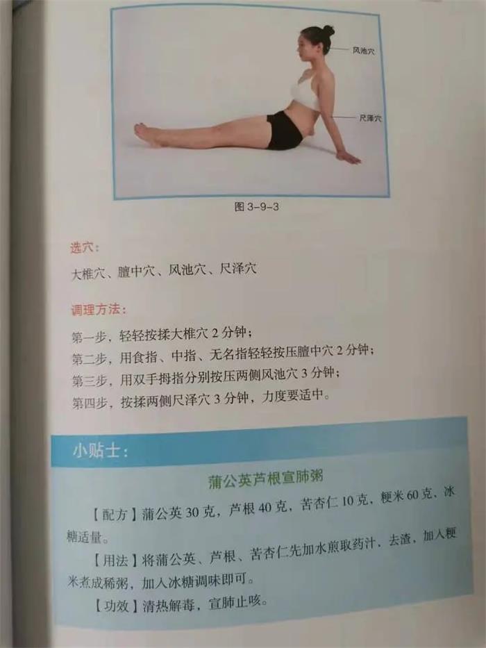 作者都详细介绍了选用的经脉和穴位,同时附以真人图示,方便跟着选取穴位。每一个常见病后面都有小贴士,一些简单的食疗方。