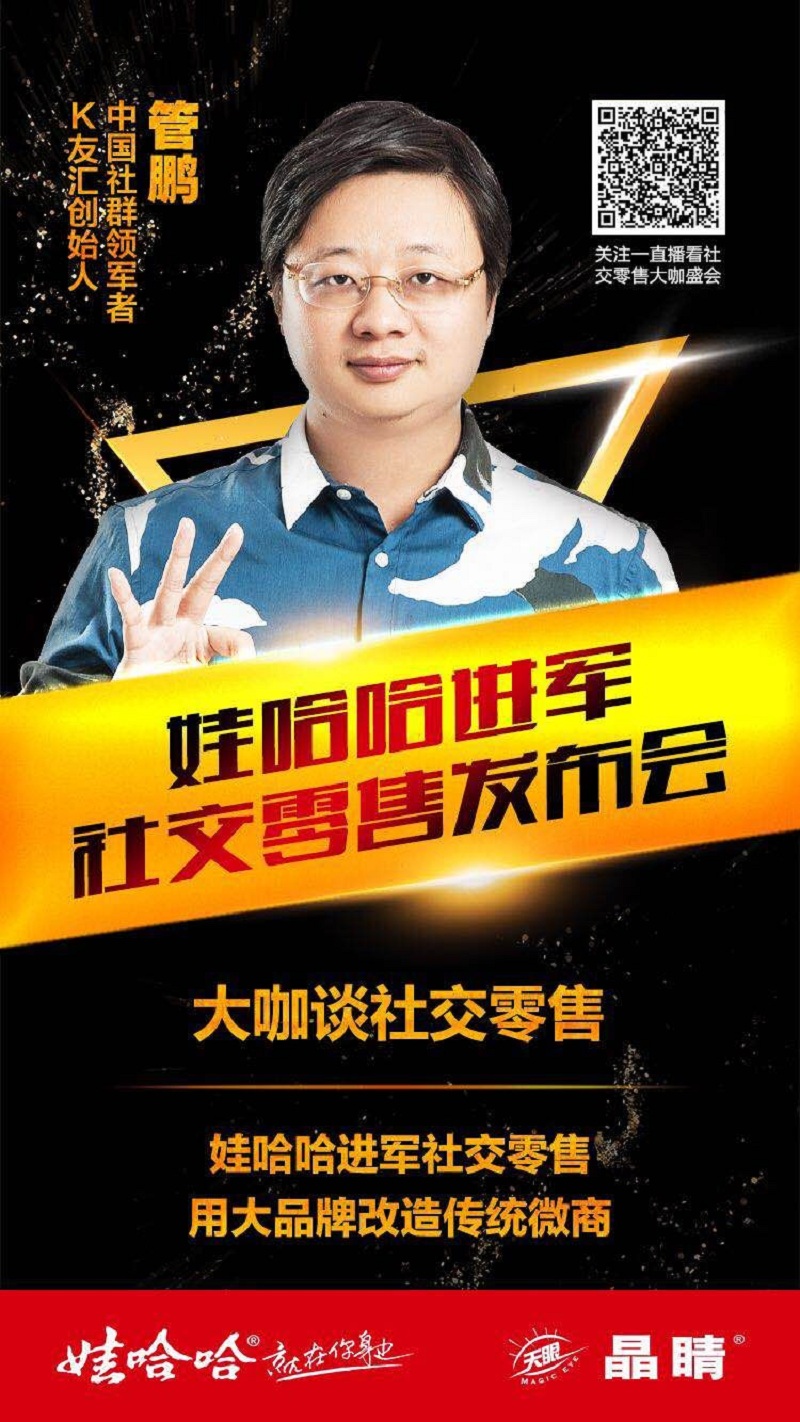 管鹏老师是互联网时代下的成功人物,兼有中国社群时代领军者、K友汇发起人、傲华荟联合创始人、17火联合创始人、中国社群联盟联合发起人、炎黄网络创始人、开友品牌管理(上海)有限公司董事长、开友商学院荣誉院长、百度创业俱乐部理事、微赢投资控股集团董事、泽平微商事业部总裁等多项头衔。管鹏老师有长达十年的互联网经验,是新经济下走向事业巅峰的典型范例。凭借着自身的经验和实力,管鹏老师连续多年受邀参与中国最具影响力的互联网创业者盛会中国站长年会,同时连续三年做为百度联盟理事参与百度联盟峰会。近期,管鹏老师受邀参加了娃哈哈产品发布会,作为电商领域的领军人物,管鹏老师此次出席对于双方而言都很有意义。