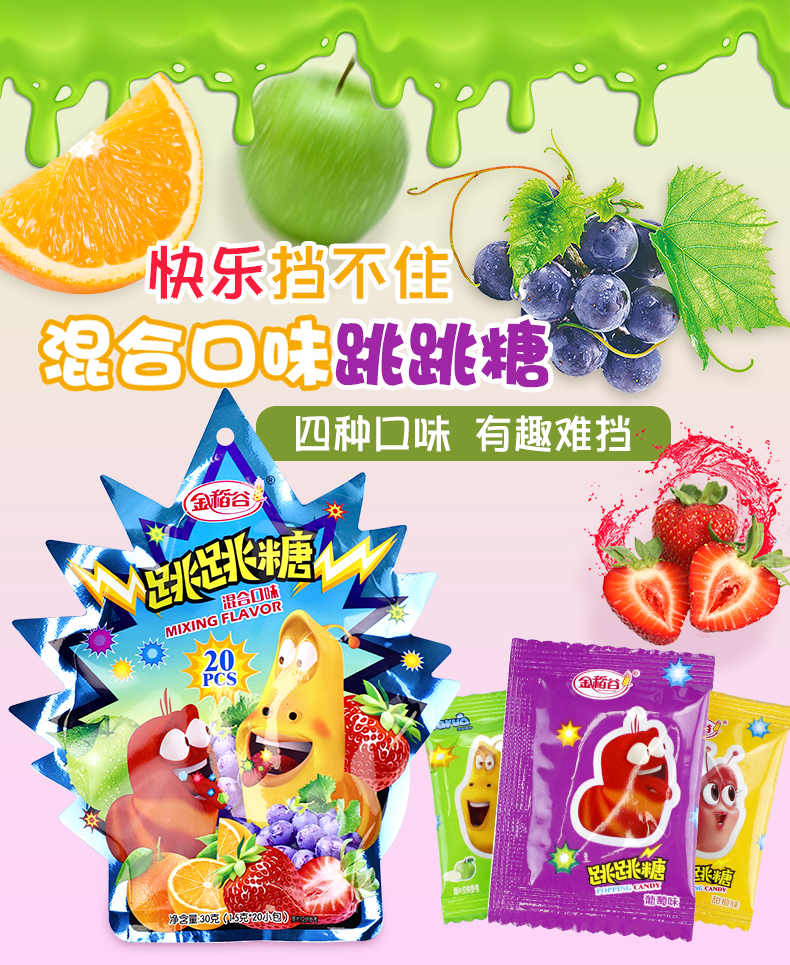 这款跳跳糖是金稻谷和爆笑虫子的联名款呢!丑萌丑萌的爆笑虫子实在太逗了,加上神奇的跳跳糖刺激你的味蕾,简直太配了,你值得拥有!