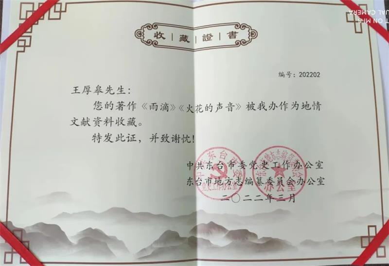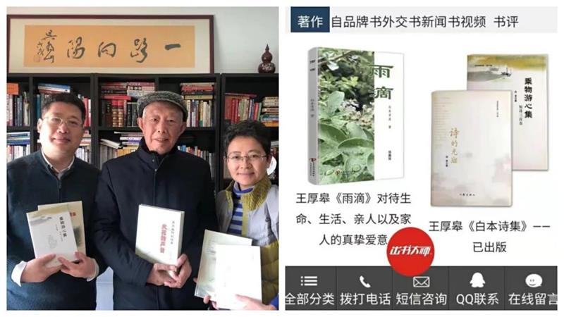 市委宣传部原副部长、东台日报原总编、科协四级调研员侯爱平:《澎湃的诗情 唯美的诗意纯净的诗心》 我曾与厚皋老在教育局教研室共事,厚皋老的待人处事,作文写诗,可以用“真善美”来概括。他的诗,歌颂夫妻、兄弟、父子等天伦之情,欣赏人文古迹、美好风光,吟咏人与动物、生物的友好互动,乃至人类与自然的和谐共生,“真善美”主线贯穿其中。读厚皋老诗集,为他那澎湃潮涌的诗情所激荡,为他孜孜以求唯美的诗意去击节,为他坚持守正创新、纯净如玉的诗心而感染。为耄耋之年仍在中国诗歌海洋里求真、求善、求美的厚皋老点赞!祝他诗心不老,初心长青!省特级教师、教授级中学高级教师、全国日记写作专家程韶荣:《厚皋诗作老更成》 以语文教学和研究为业的王厚皋先生,想不到晚年活出诗意人生,在职时仅仅是即兴赋诗,偶一为之,退休后却是诗情勃发,文思泉涌,诗集连连。七八十岁了,还一直在诗的山路上攀援,呈现他的刚毅、坚韧。他的诗似乎看不出岁月的沧桑,扑面而来的总是一股激情。他的咏物诗尤其清新隽永,内涵丰厚,任你体味。他不止善于观察自然,更擅长从物象中寻觅理趣,对接人生。也许这正是他的诗歌耐读的奥秘之一吧。省特级教师、教授级中学高级教师、省首批名教师胥照方:《恩师,我爱您!》 “我是一滴黄河水/能从天上来/我知足/来日归大海/我淡定”捧读恩师新诗集,心潮澎湃。这里有热情,“雨滴/一粒粒/掉进无边大海/在依恋中归于无形/这一刻获得新生/成了滚落的热泪/我,激动出晶莹”,更有对人生的穿透,“雨滴”,分明就是你我的一生。这里有沉思,“诗人蒸发了/诗歌奄奄一息/君不见,商品在线/品牌取代了审美/只有贵和贱”,更有人世的豁达:“寄居大好河山/远眺高山流水/……/诗人梳理着忧患/时代在召唤/民族复兴的诗篇”。这里也有浪漫,“昨天的路/坎坷陡峭/风雨中/我拉紧你的手……”更有思想的火花:“想过了是价值/正在想是希望//料想空想狂想/版权归于自己”。诗集特选520首,我想,恩师是用此献给他相亲相爱的每一个人。恩师,我爱您!