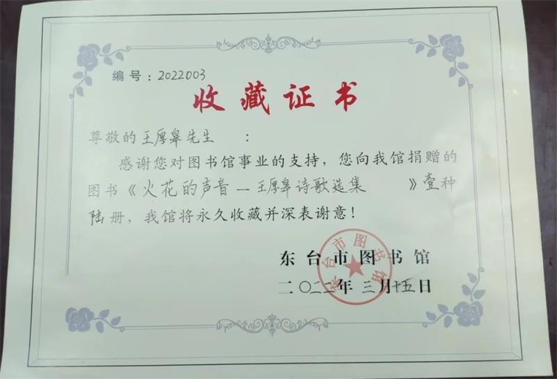 王老师前三本诗集曾赠给市教育局、东中、教师进修学校及后并入的开放大学、苏东双语学校和复旦大学、华东师范大学、华东理工大学等院校。