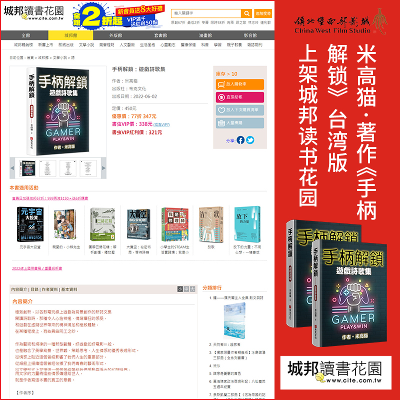 米高猫:祝米高猫最新著作《手柄解锁》台湾版上线各大网络销售平台,拉开热销序幕