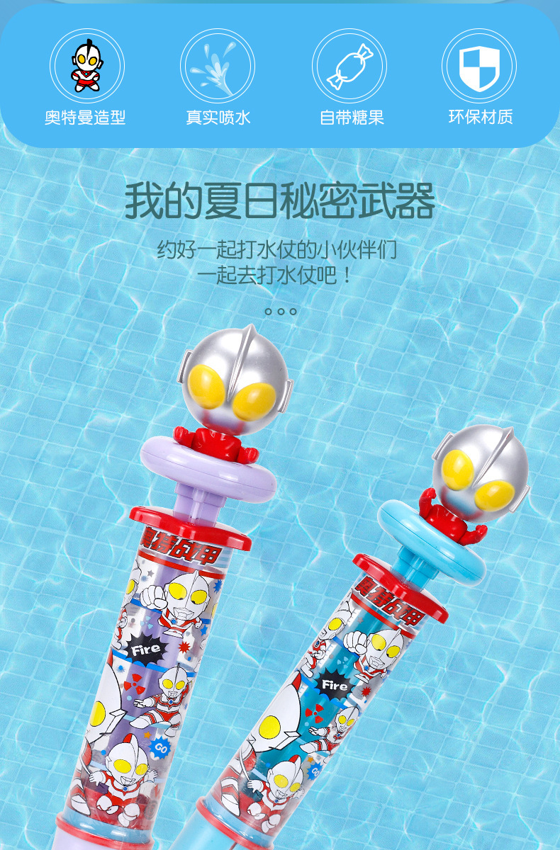 陈瑞武:金稻谷水炮枪打水仗水枪玩具奥特战甲奥尔曼卡通造型儿童零食