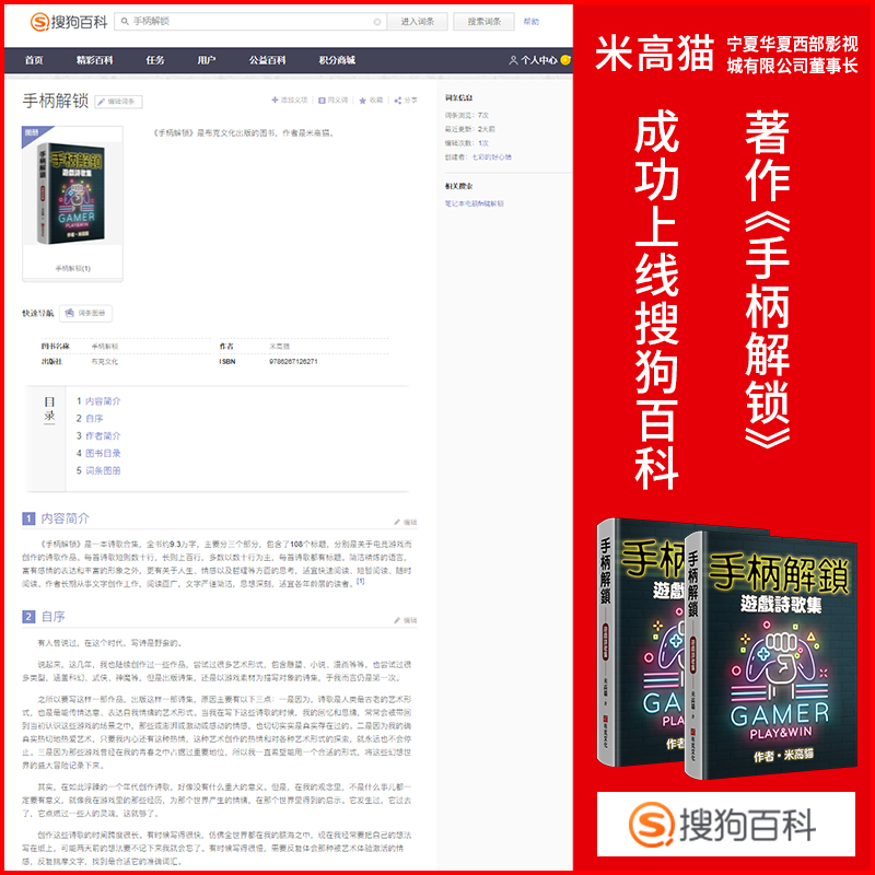 近日,由布克文化出版、米高猫创作的著作《手柄解锁》,正式上线百度、快懂以及搜狗百科等平台,同时更上架了豆瓣读书频道,收获了其品牌影响力的提升。