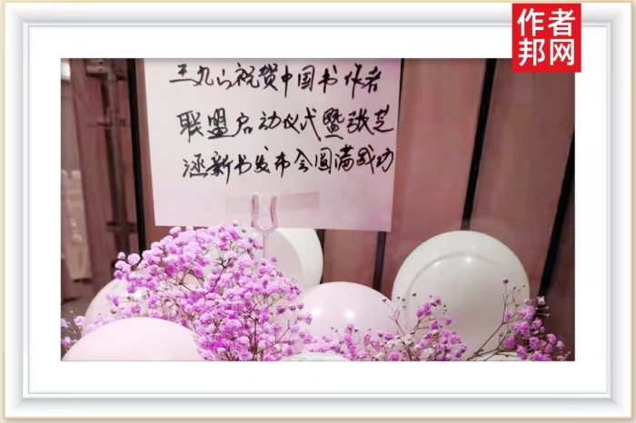 网络霸屏引流专家王九山老师,就以特邀嘉宾的身份以特殊的方式为活动送来了真挚的祝福。他的祝愿,比较特别,是为现场大家送来了一个满载祝愿的花篮。花篮底部,簇拥着许多粉紫色的鲜花。鲜花的上方则摆满了众多粉色的气球。最为特别的地方,则是花篮顶部的祝福卡片。里面,写着:“王九山老师祝中国书作者联盟启动仪式暨张芝涵新书发布会圆满成功。”的字样。