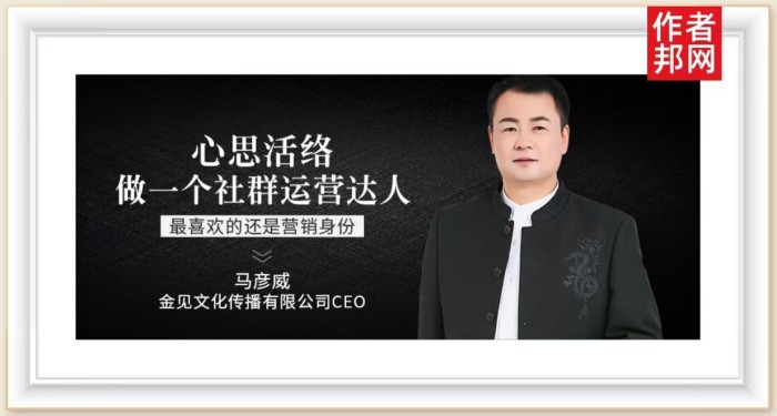 现在来看,马彦威的身份似乎有点多。他是上海金见文化传播有限公司CEO; CMO社群架构与运营导师; 今日头条社群类目导师; 抖音深度实践者; 微信互联网营销专家; 《管理智慧》签约讲师; 老马识途社群公社联合创始人……但是如果你问他,最喜欢哪一个身份,他会非常肯定地告诉你,他喜欢成为一个“运营人”。