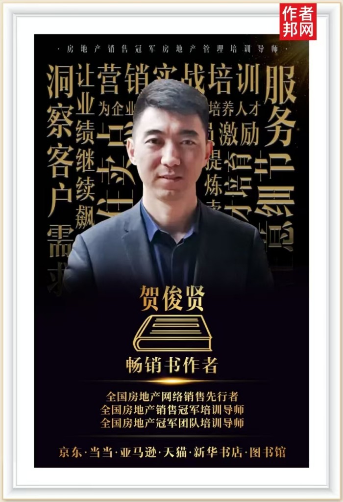 贺俊贤,80后房地产营销专家,从业15年时间,是为数不多从一线销售晋升为主管-经理-营销总-公司总负责的,他入行不足一年晋升团队负责人,带领团队6个月单月业绩破百万,管理区域时市占率突破60%,收佣率连续数年100%,不论是销售技巧、团队管理、薪酬设计、企业文化、组织架构等,贺老师都有自己的独到见解,期望赋能行业更多企业和从业者!